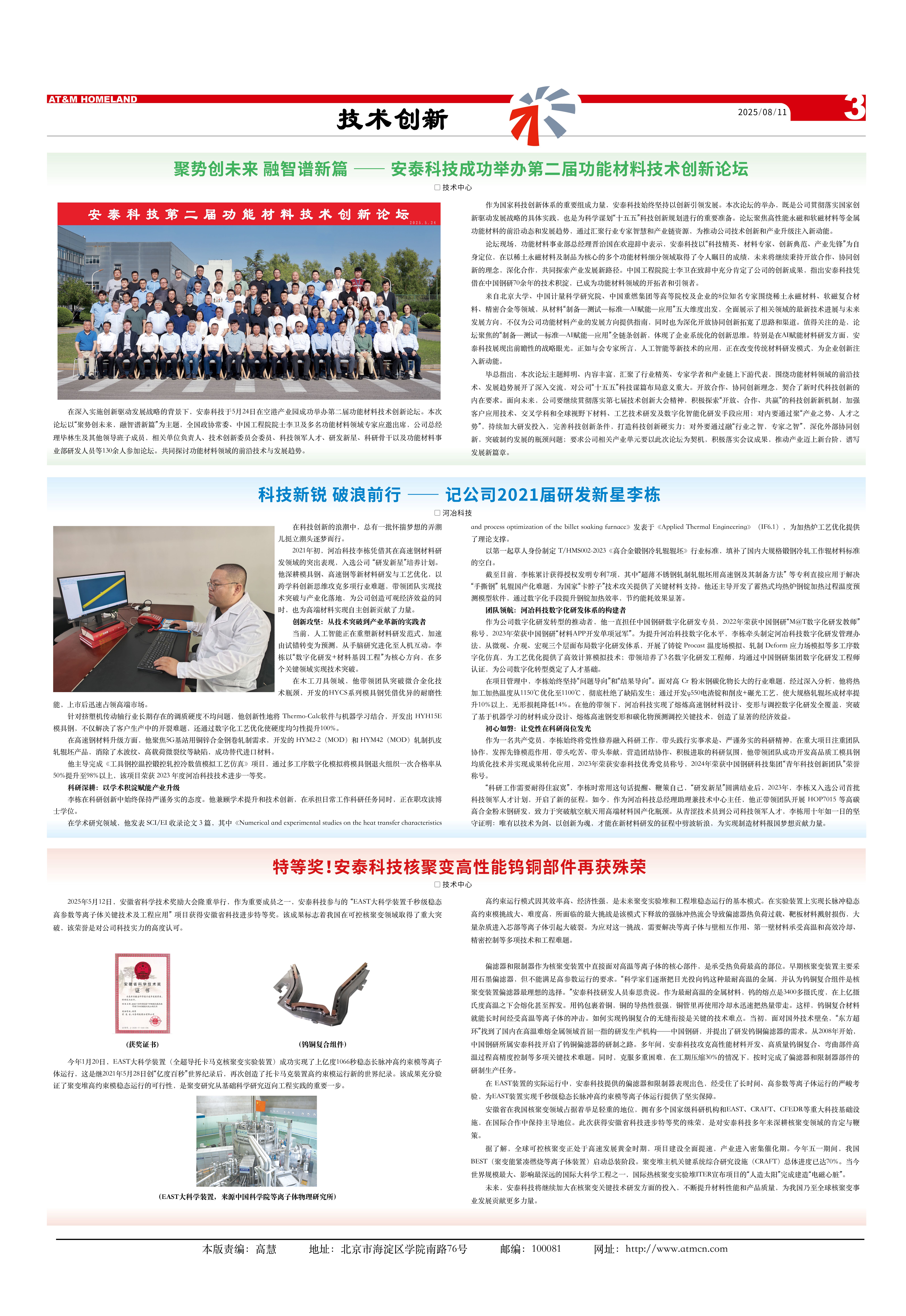 作为国家科技创新体系的重要组成力量,安泰科技始终坚持以创新引领发展。本次论坛的举办,既是公司贯彻落实国家创新驱动发展战略的具体实践,也是为科学谋划“十五五”科技创新规划进行的重要准备。论坛聚焦高性能永磁和软磁材料等金属功能材料的前沿动态和发展趋势,通过汇聚行业专家智慧和产业链资源,为推动公司技术创新和产业升级注入新动能。